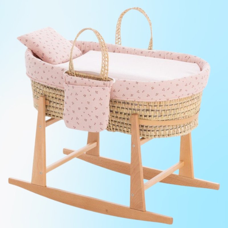 Moises de Mimbre Salmón con Estampados: Elegancia y Originalidad para Tu Bebé
